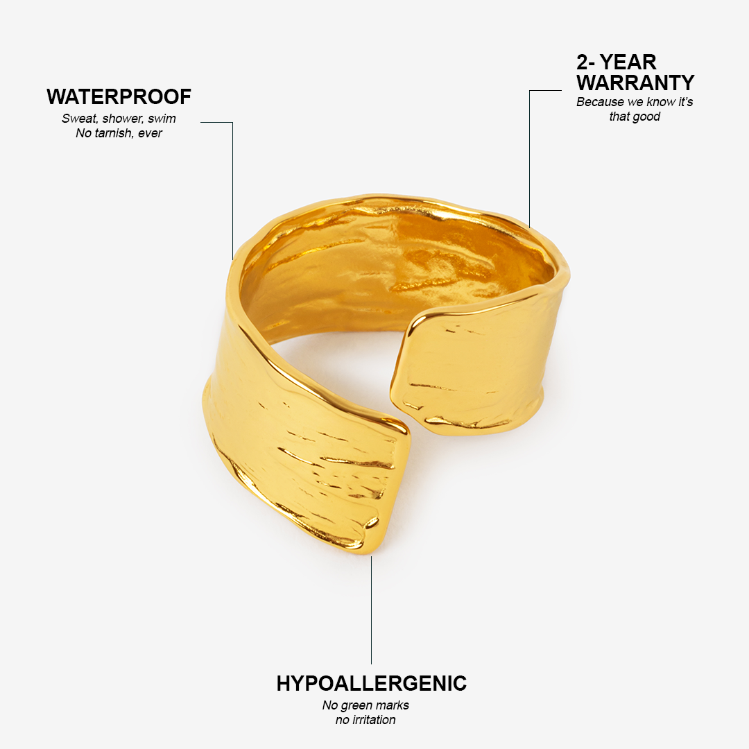 For the woman whose style is her signature. Structured, sharp, and set in 18K gold. The ring that makes the whole look.